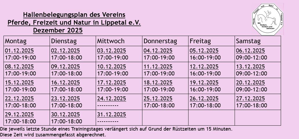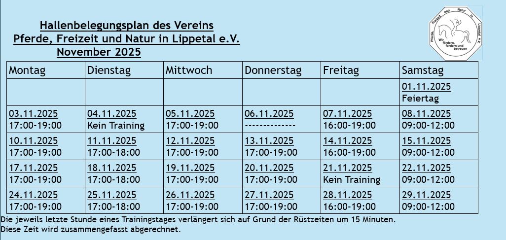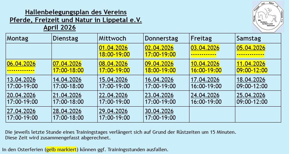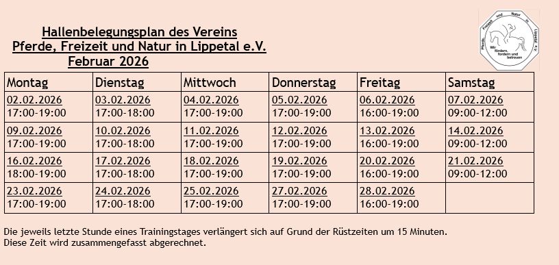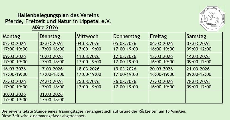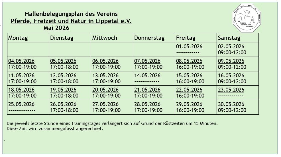 Hier findet Ihr den aktuellen Hallenplan des laufenden Monats: Dieser Plan kann jederzeit aktualisiert werden.