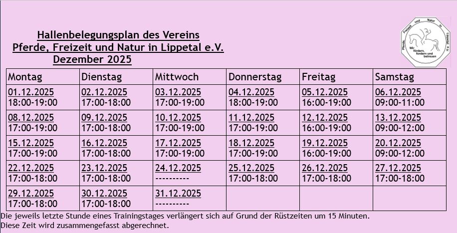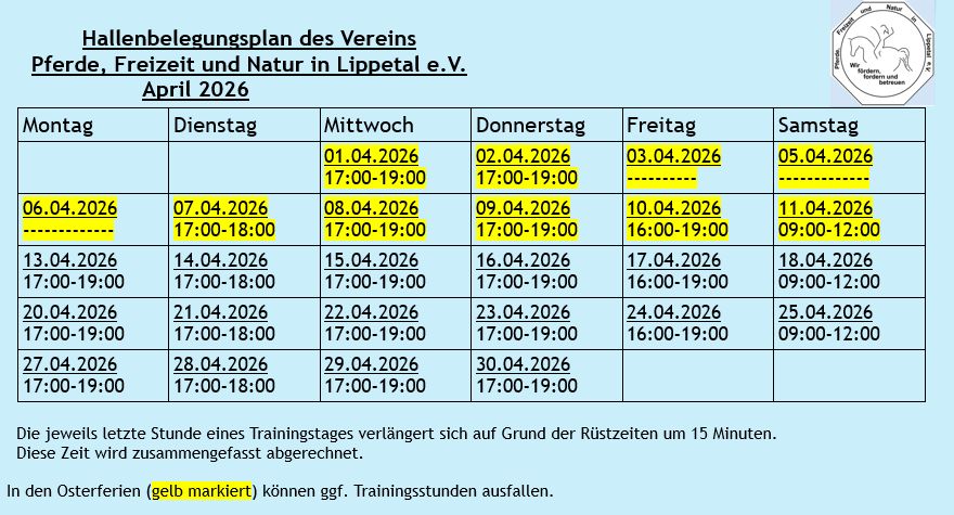 Hier findet Ihr den aktuellen Hallenplan des laufenden Monats: Dieser Plan kann jederzeit aktualisiert werden.